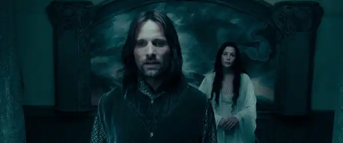 В Бри появляется одна из ключевых фигур — Арагорн, скрывающийся под именем Страйдер. Его образ в фильме сочетает в себе твердость воина и горечь бездны королевских обязанностей. На Веатертопе Фродо получает смертельную рану от клинка Назгула, и в этот момент фильм демонстрирует, что опасность от Кольца распространяется не только через искушение, но и через физическое зло других. Арагорн лечит Фродо и ведет его на восток, но из-за нарастающих угроз путь в Ривенделл становится долгим и тернистым. В фильме была принята значимая экранная замена: сцену спасения Фродо уводит Арвен, а не Глорфиндел из книги, что усиливает романтические и драматические нити повествования, придавая фильму более кинематографичную структуру отношений между персонажами.